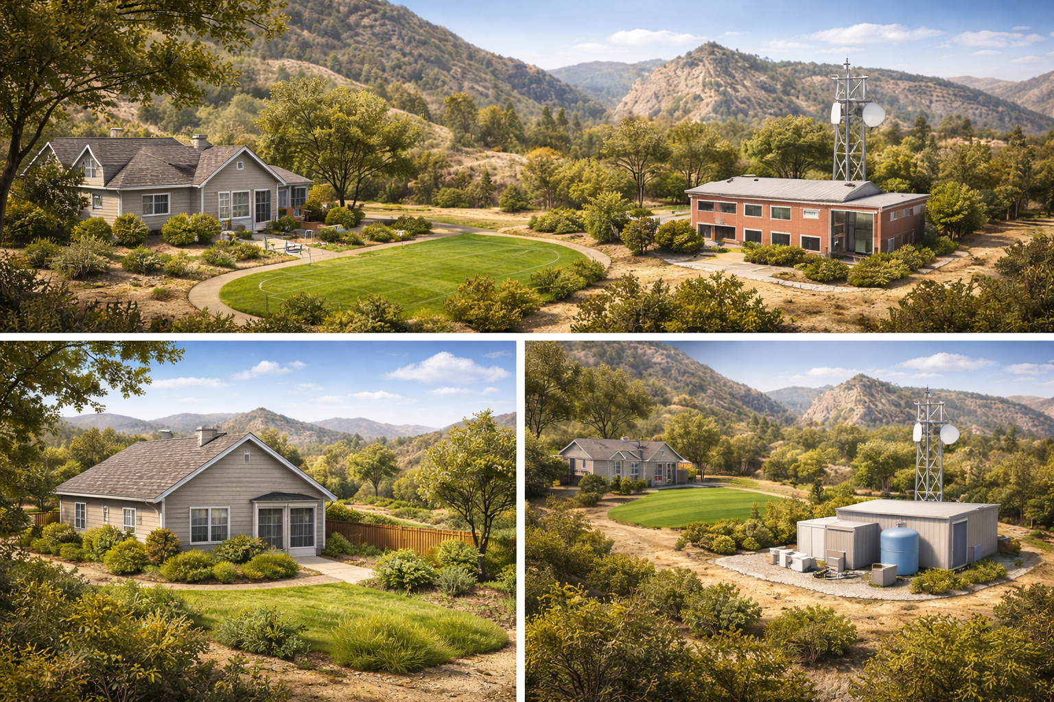 Zone 2 : (30–100 feet) the reduced fuel zone. Here the strategy is to thin, prune, and break up continuous fuels without scraping the land bare. This could be a slope behind a home, the hillside behind a warehouse, or the open space adjacent to a pump station or campus.